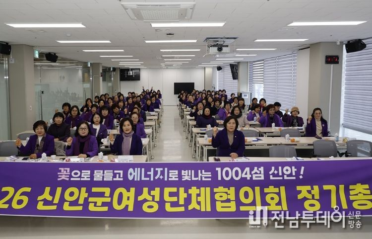 전남투데이 김용희 기자 | 신안군여성단체협의회(회장 안미영)는 12일 신안군 가족센터 교류소통실에서 군 임원 및 14개 읍·면 임원·회원 100여 명이 참석한 가운데 2026년 정기총회를 개최했다.