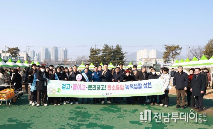 전남투데이 강영선 기자 | 화순군은 지난 12일 민족 최대 명절 설을 맞아 화순읍 광덕문화광장에서 군민과 함께하는 ‘탄소중립 녹색생활 실천 캠페인’을 실시했다고 밝혔다.