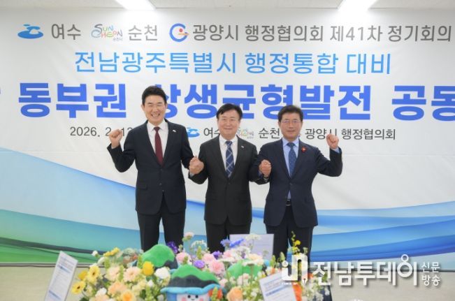 전남투데이 조평훈 기자 | 순천시는 여수‧광양시와 함께 13일 순천대학교 70주년기념관에서 제41차 여수‧순천‧광양시 행정협의회 정기회의를 열고, 전남 동부권의 미래 경쟁력 확보를 위한 공동건의 3건을 공식 의결했다고 밝혔다.