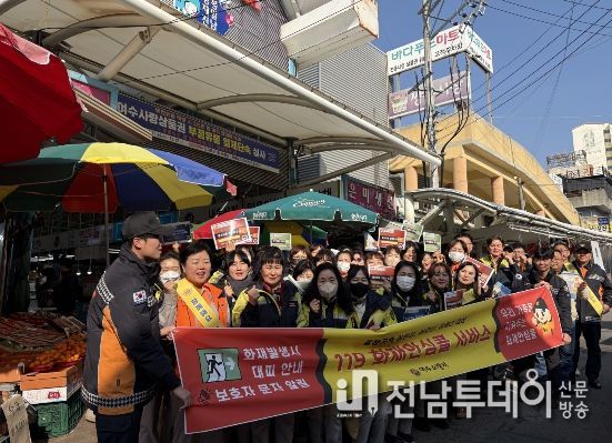 전남투데이 조평훈 기자 | 여수소방서(서장 서승호)는 2월 13일 설 명절을 앞두고 여수시 관내 전통시장 13개소에서 동시에 화재 예방과 안전문화 확산을 위한 화재예방 캠페인을 실시했다.
