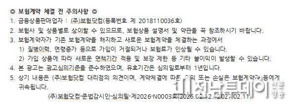 보다 자세한 가입 조건이나 적정 진단금액 설정은 비갱신형 암보험 비교사이트를 활용하여 여러 회사의 상품을 실시간으로 보험료 비교도 해볼 수 있으며, 다양한 정보를 비대면으로 주말까지 전문가와 상담이 가능하므로 3대진단비 등 종합건강보험 가입 시 편리하게 이용할 수 있다.