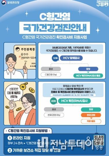 나만석 전남도 감염병관리과장은 “이번 의료기관 확대 조치로 검사 접근성이 크게 높아질 것으로 기대한다”며 “1970년생은 국가건강검진을 계기로 반드시 간 건강을 확인하고, 항체 양성 시 확진검사비 지원도 빠짐없이 신청하길 바란다”고 당부했다.