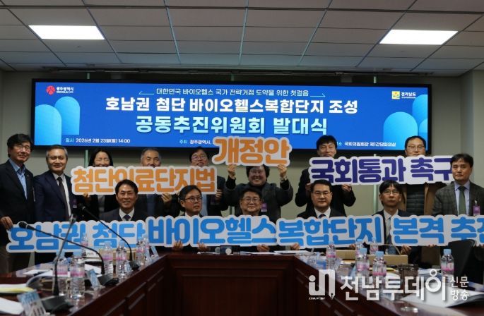 광주광역시와 전라남도는 23일 오후 2시 국회의원회관 제1간담회의실에서 ‘호남권 첨단 바이오헬스복합단지 조성 공동추진위원회 발대식’을 개최하고, 입법 기반 마련과 정부 지정 전략을 본격 추진한다.