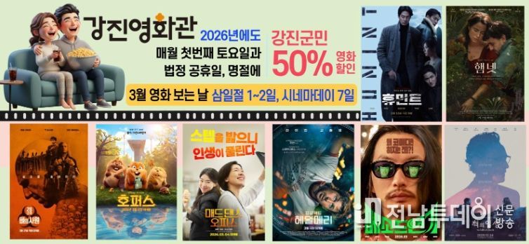 전남투데이 박동운 기자 | 강진군이 군민의 문화 향유 기회를 넓히고 지역 영화관 활성화를 위해 매달 운영 중인 ‘영화 보는 날’ 행사를 3월에도 추진한다.