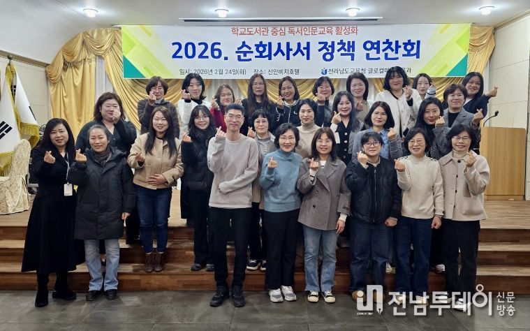 전남투데이 김용희 기자 | 전라남도교육청은 23~24일 신안비치호텔에서 ‘2026. 순회사서 정책 연찬회’를 열고, 학교도서관 중심 독서인문교육 활성화 방안을 논의했다.