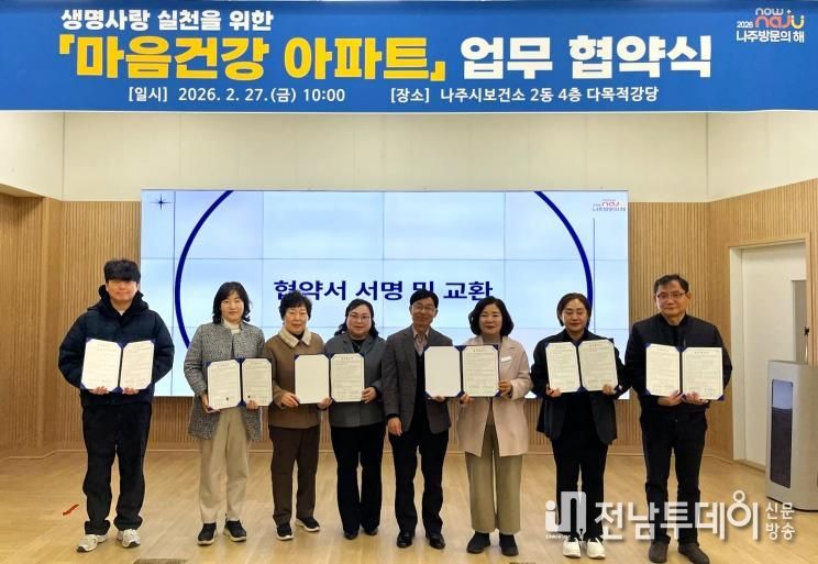 나주시보건소 건강증진과는 27일 보건소 4층 강당에서 ‘마음건강 아파트’ 추진을 위한 업무협약을 체결하고 본격적인 사업 추진에 착수했다고 밝혔다.