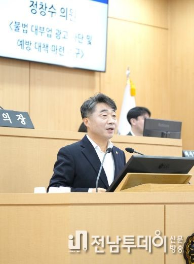 전남투데이 김경민 기자 | 남구의회 정창수 의원은 27일 제318회 임시회 2차 본회의에서 5분 자유발언을 통해 불법대부업 광고 문제의 심각성을 지적하고, 예방 대책 마련을 촉구했다.