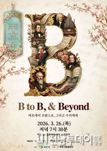 전남투데이 김용희 기자 | 목포시립합창단(예술감독 겸 상임지휘자 김선희)이 오는 3월 26일 오후 7시 30분, 목포시민문화체육센터 소공연장에서 제83회 정기연주회 'B to B & Beyond(Bach to Brahms) : 해설이 있는 합창인문학콘서트 시즌1'을 개최한다.