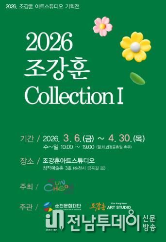 전남투데이 조평훈 기자 | 순천문화재단이 운영하는 순천창작예술촌 3호 ‘조강훈 아트스튜디오’에서 오는 3월 6일부터 4월 30일까지 「2026 조강훈 컬렉션Ⅰ」 전시를 개최한다.