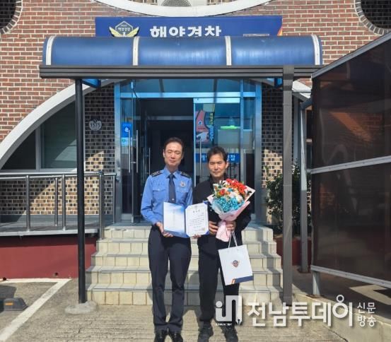 전남투데이 김용희 기자 | 완도해양경찰서는 지난달 20일 전남 장흥군 신동항 인근 해상에서 발생한 침수선박 사고 현장에서 승선원 4명을 구조한 김천권 선장에게 감사장을 수여했다.