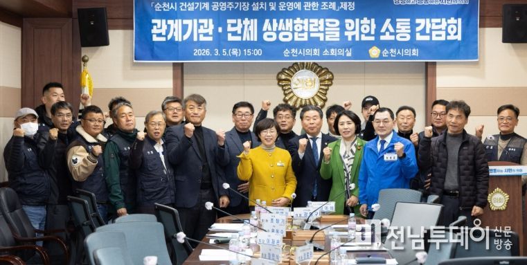 전남투데이 조평훈 기자 | 순천시의회 최미희 의원은 지난 5일 '순천시 건설기계 공영주기장 설치 및 운영에 관한 조례' 제정을 위한 간담회를 개최했다.