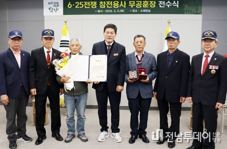 전남투데이 허은석 기자 | 담양군은 5일 군청 소쇄원실에서 6·25전쟁 참전용사인 고(故) 조동규 상병의 유족에게 무공훈장을 전수했다고 밝혔다.