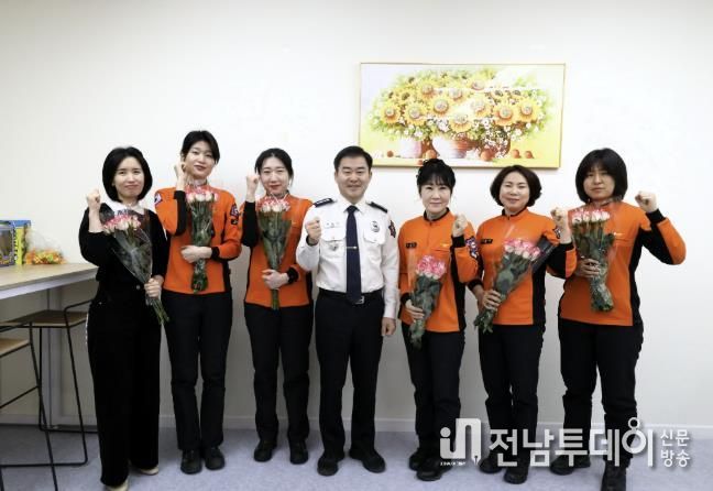 특히 이날 간담회에서는 강진소방서에서 추진 중인 ‘꽃을 든 소방관’ 시책과 연계해 여성 소방공무원에게 감사의 마음을 담은 꽃다발을 한 사람당 한 다발씩 전달하는 행사도 함께 진행돼 의미를 더했다. 꽃을 전달하며 직원들의 노고를 격려하고 서로를 존중하는 조직문화를 되새기는 시간도 마련됐다.