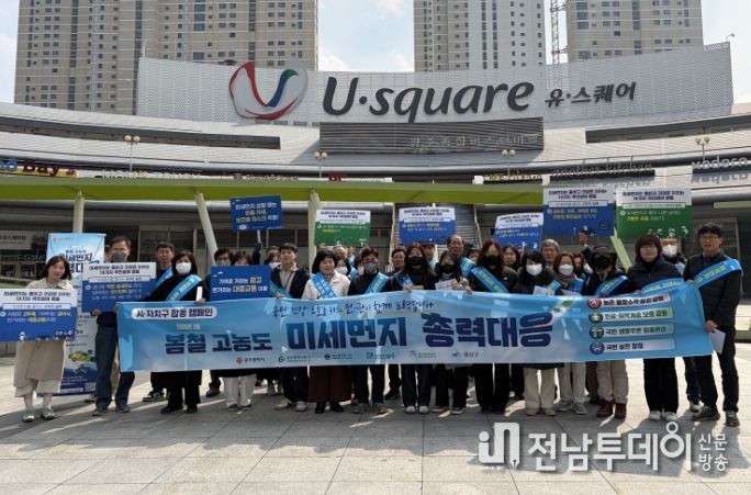 전남투데이 김경민 기자 | 광주광역시는 5개 자치구와 함께 9일 서구 광주종합버스터미널 앞 광장에서 봄철 고농도 미세먼지 발생에 대응하기 위한 합동 캠페인을 벌였다.