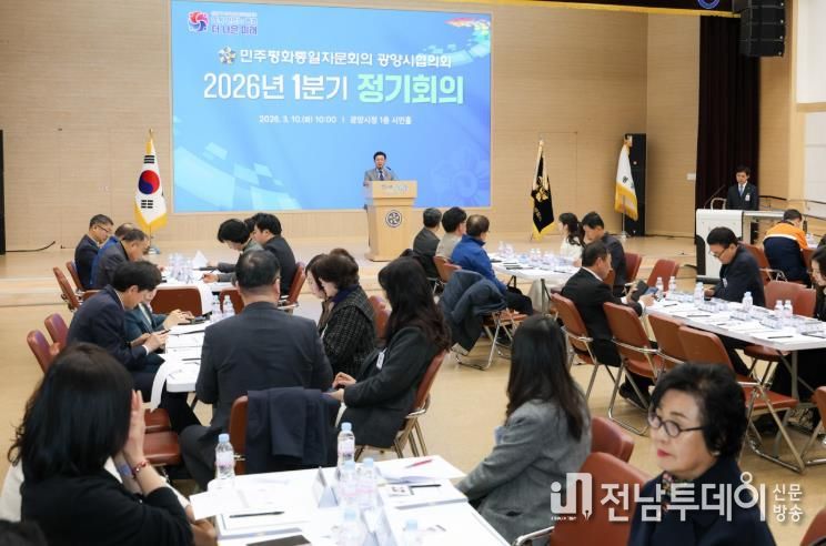 전남투데이 조평훈 기자 | 민주평화통일자문회의 광양시협의회는 3월 10일 광양시청 1층 시민홀에서 ‘한반도 평화공존을 위한 대내외 정책 추진방향’을 주제로 ‘2026년 1분기 정기회의’를 개최했다.