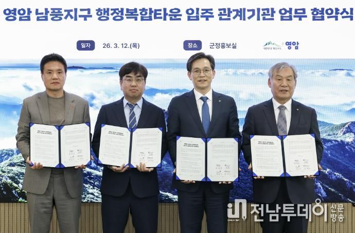 12일 영암군은 군청에서 서부지방산림청 영암국유림관리소, 국민건강보험공단 영암지사, NS종합건설과 ‘남풍지구 행정복합타운 입주 업무협약’을 체결했다.