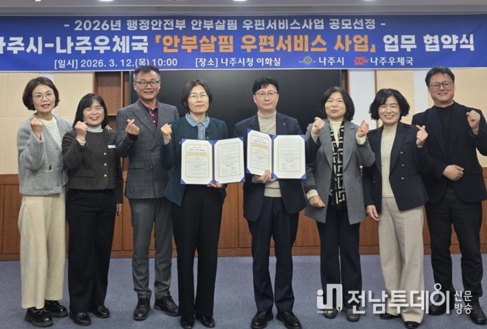 나주시는 행정안전부 ‘2026년 안부살핌 우편서비스 사업’ 공모에 선정돼 4월에 대상자를 선정하고 오는 5월부터 사업을 본격 시행할 계획이라고 13일 밝혔다.
