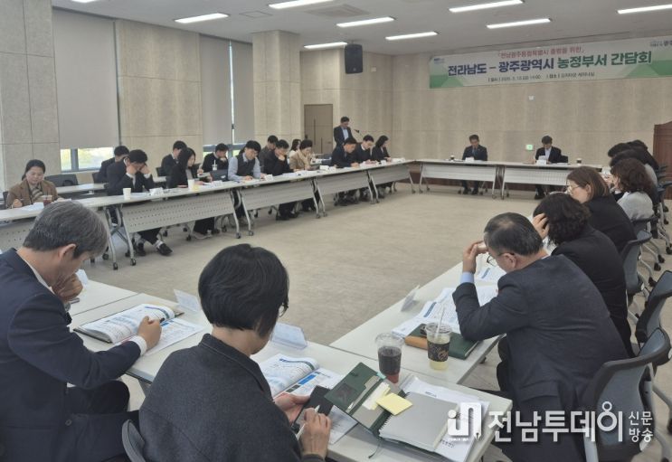 오영걸 광주시 경제창업국장, 유덕규 전남도 농축산식품국장이 공동주재한 이날 회의에는 양 지자체 농정분야 실무진들이 참석해 정책 협력의 기틀을 다졌다.