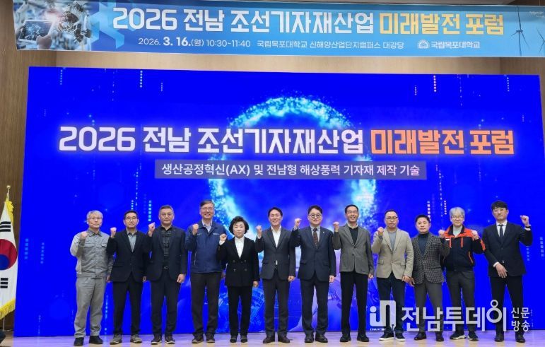 전남투데이 김용희 기자 | 전라남도는 16일 영암 신해양산업단지캠퍼스에서 ‘전남 조선기자재산업 미래발전 포럼’을 열어 조선산업의 인공지능 대전환(AX) 기술 방향을 논의했다.