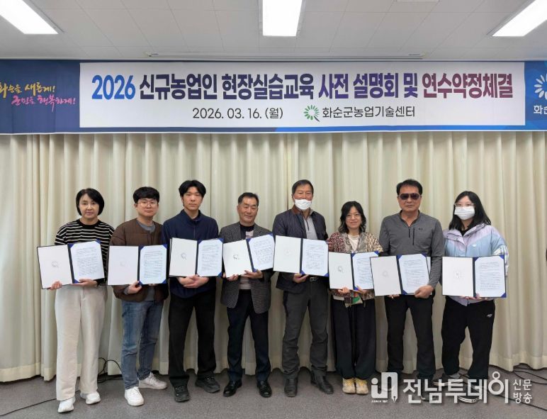 전남투데이 강영선 기자 | 화순군은 지난 16일 농업기술센터에서 2026 신규농업인 현장실습교육 사전설명회 및 연수 약정 체결식을 개최했다고 밝혔다.