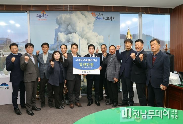 전남투데이 조평훈 기자 | (사)고흥군교육발전위원회는 18일 풍양농협(조합장 송영철)으로부터 교육발전기금 1천만 원을 전달받았다고 밝혔다.