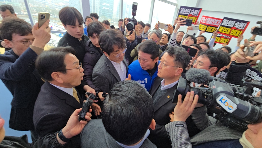 전남투데이 정홍균 기자 | 전남서부권 국립의대 설립 문제를 둘러싼 논란이 확산되는 가운데, 강기정 광주시장이 18일 전남도의회에서 열린 ‘서부권 전략·비전’ 기자회견 도중 강한 항의를 받으며 파행을 겪었다.