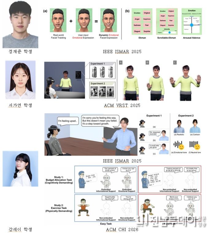 연구별 주요 성과를 보면, 정재준 학생(석·박사통합과정)은 감정 이론과 AI를 결합해 아바타의 얼굴 표정을 정밀하게 구현하고 이를 체계적으로 비교·분석하는 방법을 제시했다.