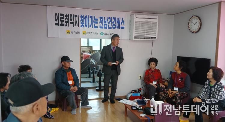 전남투데이 문경식 기자 | 진도군은 의료기관에 대한 접근성이 낮은 농어촌 지역 주민들의 건강관리를 위해 순회진료 사업의 하나로 ‘찾아가는 전남건강버스’를 통해 맞춤형 의료서비스를 추진했다.