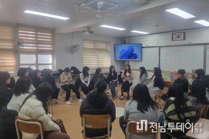 전남투데이 김용희 기자 | 전라남도교육청학생교육원(원장 김창근)이 사춘기 중학생들의 건강한 소통과 평화로운 학급 공동체 형성을 위해 운영 중인 ‘찾아가는 평화 감수성 키움교실’이 학교 현장에서 큰 호응을 얻고 있다.