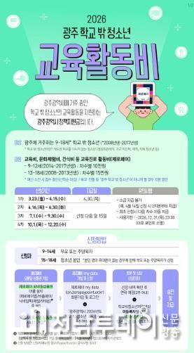 광주광역시는 학교 밖 청소년의 교육 기회를 확대하고 안정적인 성장을 뒷받침하기 위해 ‘학교 밖 청소년 교육활동비 지원사업’을 운영키로 하고, 오는 23일부터 신청을 받는다.