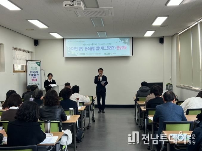 전남투데이 조평훈 기자 | 광양시와 (사)전남광양기후·환경네트워크는 기후변화 대응과 탄소중립 생활 실천 문화 확산을 위한 ‘2026년 탄소중립 실천가 양성교육’을 운영한다.