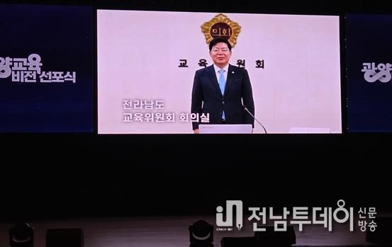 전남투데이 김용희 기자 | 김정희 전남도의회 교육위원장은 지난 3월 20일 광양 백운아트홀에서 열린 'HIGH 광양교육, 트렌드 2030 비전선포식'에 참석해, 광양교육의 미래 방향을 공유하고 전남도의회의 지속적인 지원 의지를 밝혔다.