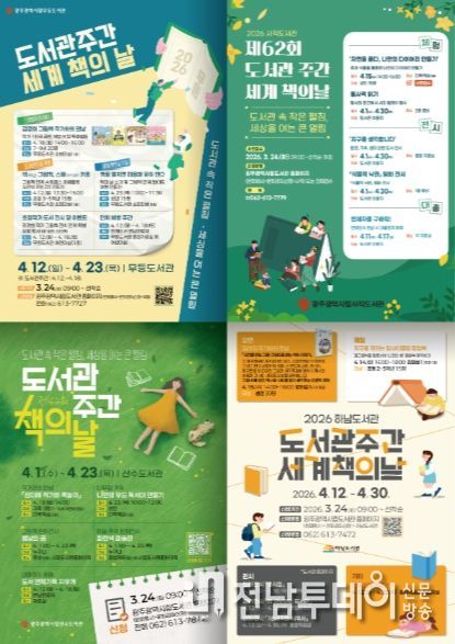 전남투데이 김경민 기자 | 광주광역시 시립도서관(무등·사직·산수·하남)은 ‘도서관 주간’(4월 12∼18일)과 ‘세계 책의 날’(4월 23일)을 맞아 다양한 독서문화 행사를 마련, 3월 24일부터 참가 신청을 받는다.