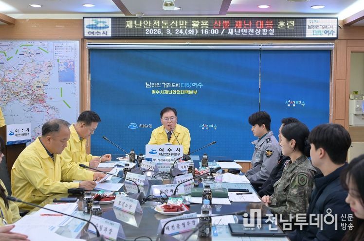 전남투데이 조평훈 기자 | 여수시는 지난 24일 여수시청 재난안전상황실에서 관계기관 간 협력 대응 역량 강화를 위해 재난안전통신망을 활용한 산불 대응 훈련을 실시했다고 밝혔다.