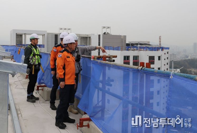 전남투데이 김경민 기자 | 광주광역시 소방안전본부는 25일 북구 매곡동 중외공원 공동주택 공사현장을 찾아 봄철 화재예방대책으로 안전관리 실태를 점검했다.