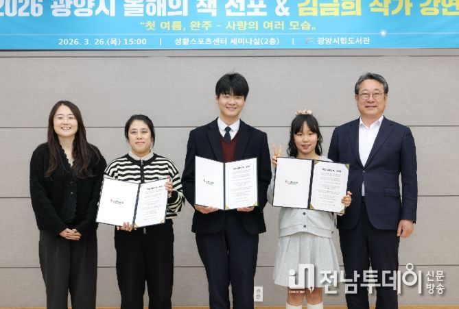 전남투데이 조평훈 기자 | 광양시가 지난 3월 26일, 시민 190여 명이 참여한 가운데 '2026년 올해의 책 선포 및 작가초청 강연'을 성황리에 마쳤다.
