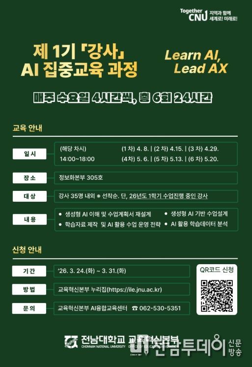 30일 전남대학교에 따르면, 교육혁신본부(본부장 정은경)는 ‘제1기 강사 AI 역량 강화 집중교육 과정’을 운영한다.