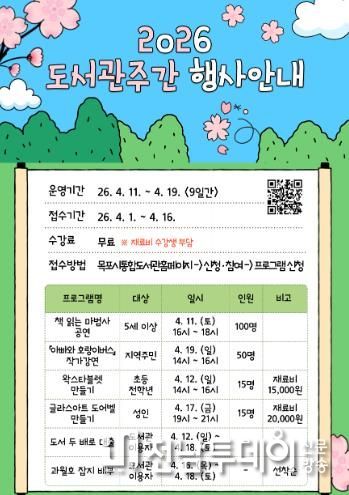 시 관계자는 “도서관의 날과 도서관 주간을 맞아 마련한 다양한 프로그램을 통해 시민들이 즐겁고 의미 있는 시간을 보내길 바란다”고 말했다.