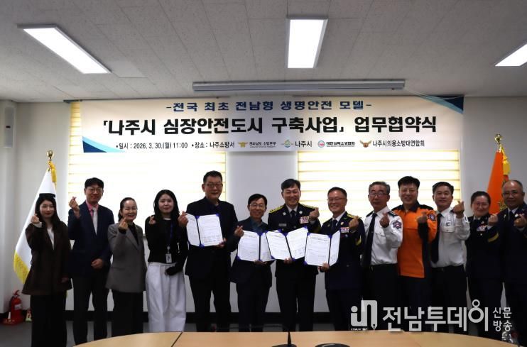 나주소방서는 금일 오전 11시 전남소방본부, 나주시, 대한심폐소생협회, 나주시의용소방대연합회와 함께 **‘나주시 심장안전도시 구축을 위한 업무협약(MOU)’을 체결했다고 밝혔다.