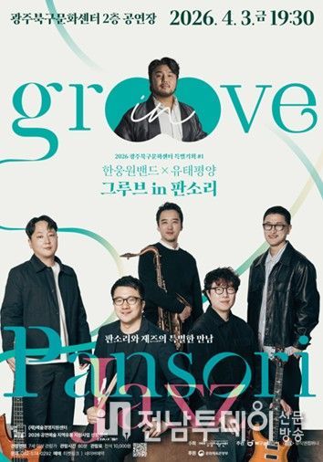 전남투데이 김경민 기자 | 동서양 음악의 경계를 허무는 가장 완벽하고 파격적인 크로스오버 무대가 광주 북구를 찾아온다. 북구문화센터는 오는 4월 3일 오후 7시 30분, 대한민국 최정상 재즈 뮤지션들로 구성된 ‘한웅원밴드’와 ‘국악 신동’ 출신의 젊은 소리꾼 ‘유태평양’이 함께하는 국악 크로스오버 기획공연 '그루브 in 판소리'를 개최한다고 밝혔다.
