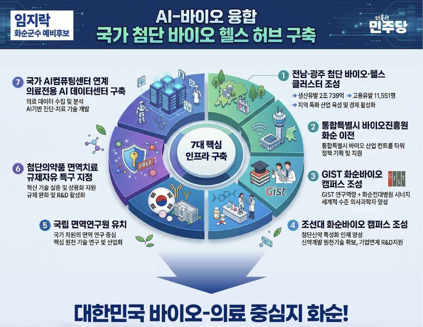 전남투데이 정홍균 기자 | 임지락 화순군수 예비후보는 2일, 화순을 명실상부한 대한민국 바이오-의료의 중심으로 도약시키기 위한 플랜을 제시하였다.
