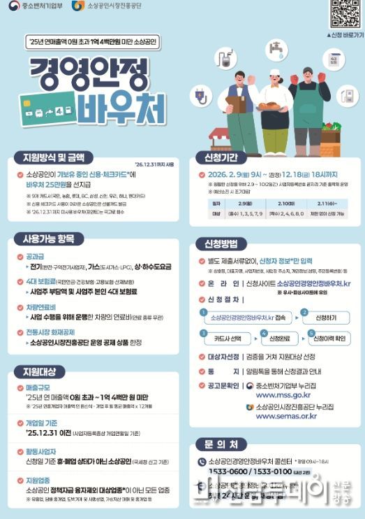 이번 사업은 중소벤처기업부와 소상공인시장진흥공단이 추진하는 정책으로, 공과금과 4대 보험료 등 고정비용에 사용할 수 있는 바우처를 지원해 소상공인의 실질적인 경영 안정을 돕기 위한 것이다.