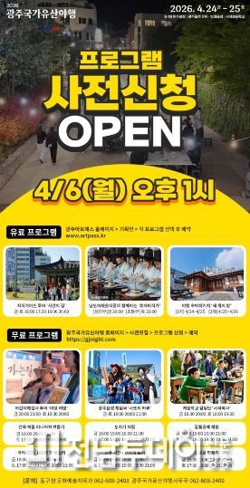 전남투데이 김경민 기자 | 광주 동구는 오는 24~25일 이틀간 5·18민주광장, 서석초등학교, 광주읍성 유허 등 국가유산 일원에서 열리는 ‘광주 국가유산 야행’ 프로그램의 사전 참여자를 모집한다고 밝혔다.
