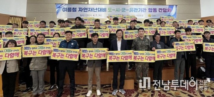 전남투데이 김용희 기자 | 전라남도는 7일 나주 중흥골드스파&리조트에서 도-시군-유관기관 합동간담회를 열고 여름철 자연재난에 대비해 재난 취약시설 5만 2천여 개소를 전수 점검하고 재난안전대책본부를 운영하는 등 대응체계를 강화하기로 했다.