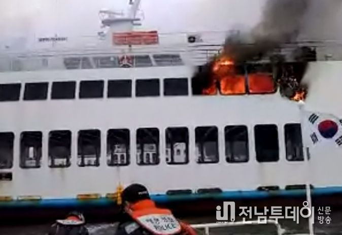 전남투데이 김용희 기자 | 완도해양경찰서는 10일 오전 7시 50분경 해남군 땅끝항에 정박 중이던 여객선 A호(621톤)에서 화재가 발생해 현재 진화 작업을 진행 중이라고 밝혔다.