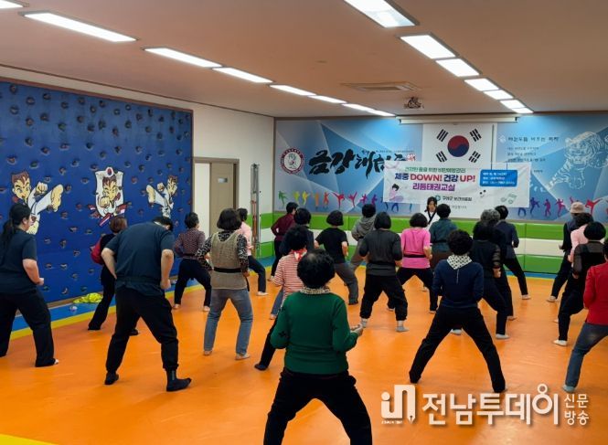 전남투데이 강길수 기자 | 전남 구례군은 지역주민의 비만 예방과 건강관리를 위해‘체중 Down! 건강 Up! 리듬태권교실’을 운영하며 큰 호응을 얻고 있다고 밝혔다.