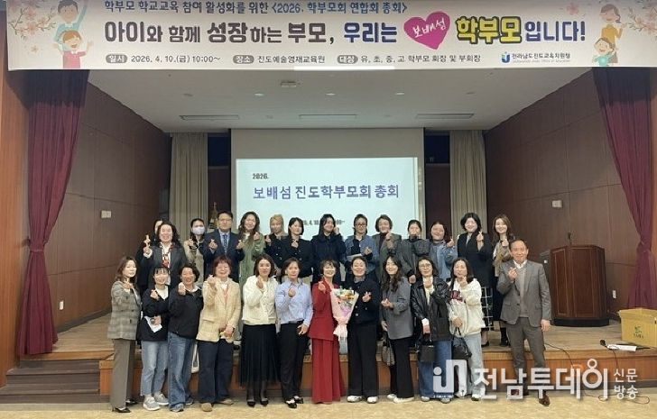 전남투데이 문경식 기자 | 전라남도진도교육지원청은 4월 10일에 진도예술영재교육원에서 유·초·중·고 학교별 학부모회 임원 40명을 대상으로 「2026. 보배섬 진도학부모회 연합회 총회」를 개최했다.