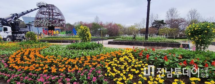 전남투데이 김윤걸 기자 | 전남 함평군이 대한민국 대표 봄 축제인 나비대축제 개막을 앞두고 함평엑스포공원에 대형 꽃탑을 설치해 이목을 끈다.