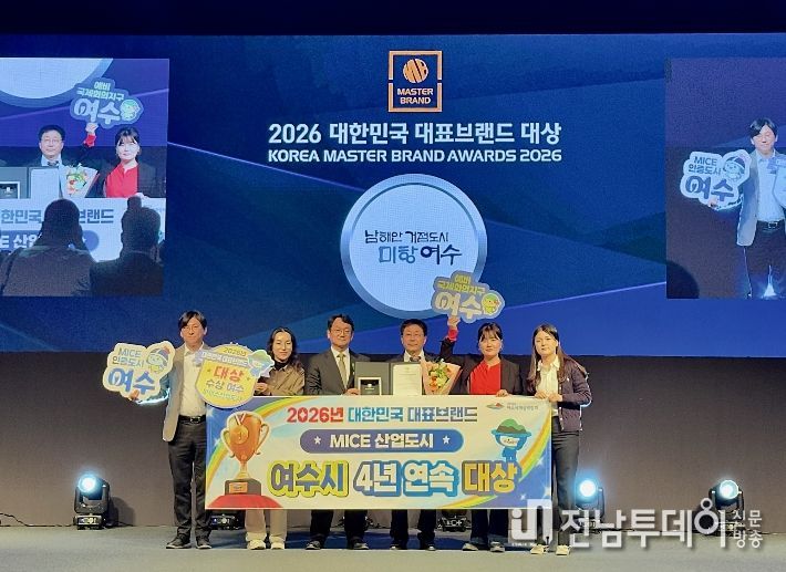 시에 따르면 14일 서울에서 열린 ‘2026 대한민국 대표브랜드 대상’에서 여수시가 마이스산업도시 부문에서 경주시, 고양시, 수원시, 포항시, 춘천시 등 전국 주요 지자체와 경쟁해 1위에 오르며 대한민국 대표 MICE 도시로서의 위상을 다시 한번 입증했다.