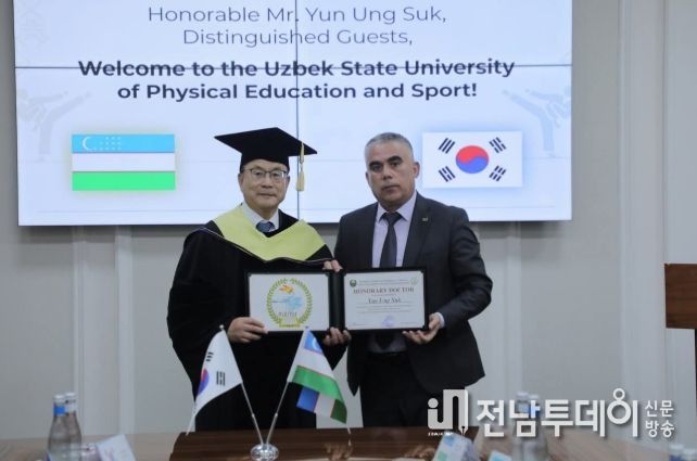 전남투데이 박세훈 기자 | 윤웅석 국기원장이 우즈베키스탄 국립체육대학교 명예박사 학위를 받았다.